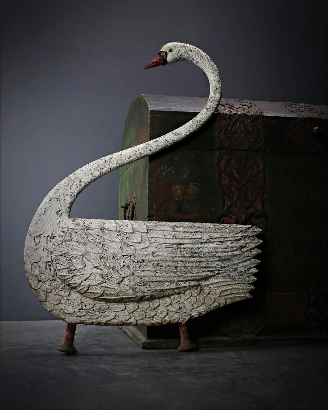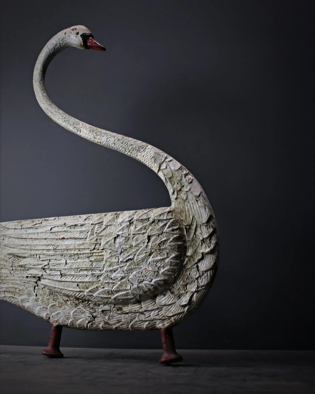 A just wonderful Cast iron Swan, originally one of a pair which would have served as garden bench ends - singularly a very majestic, elegant decorative piece in original painted finish. English, c.1900 W: ??cm H: ??cm D: ??cm£495