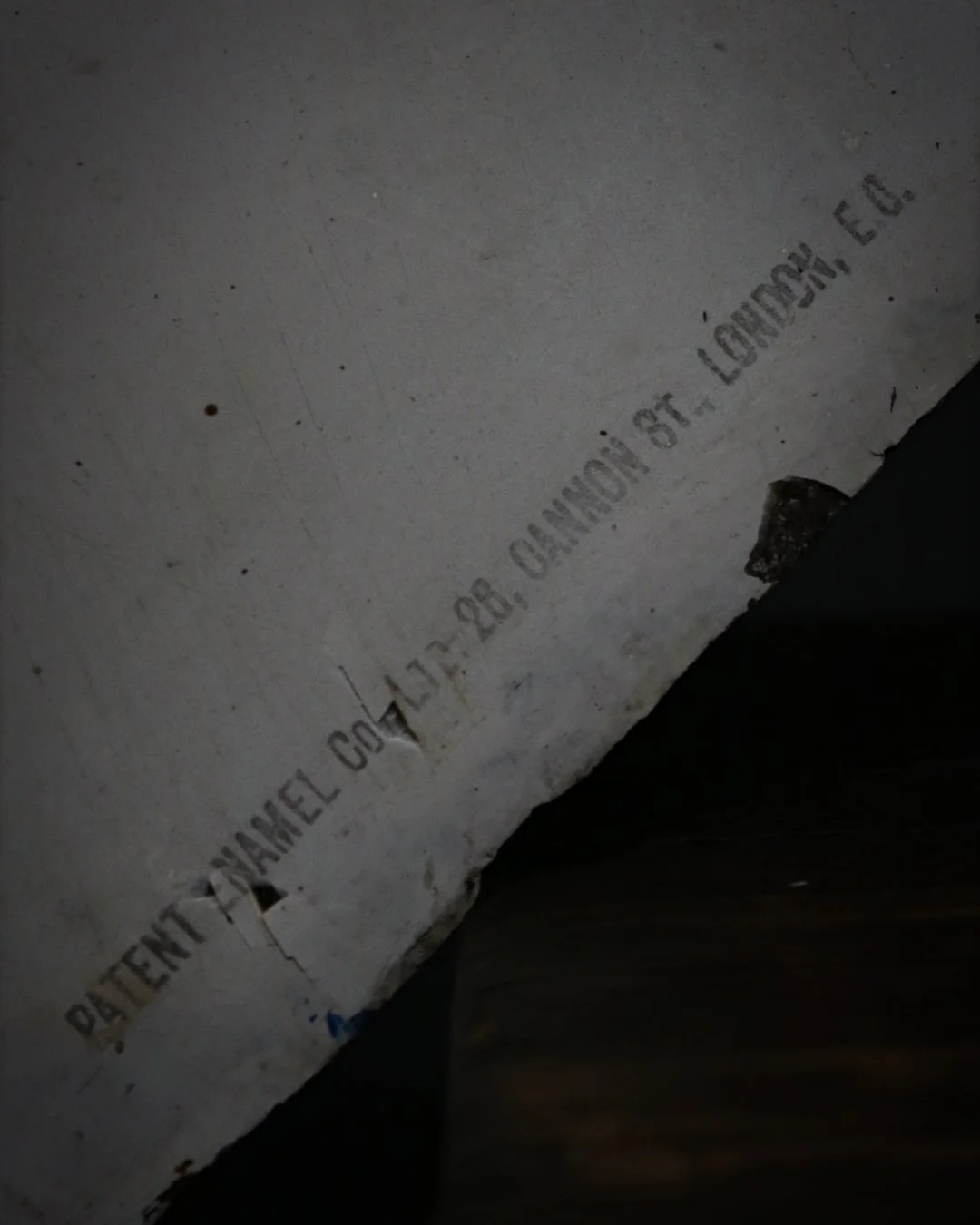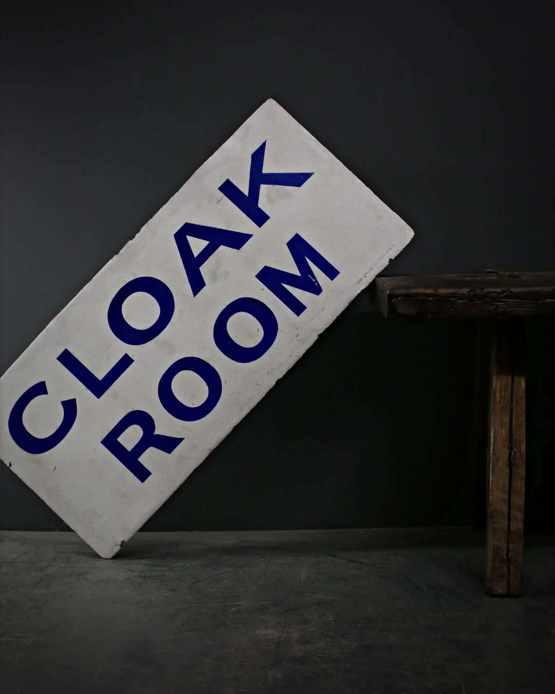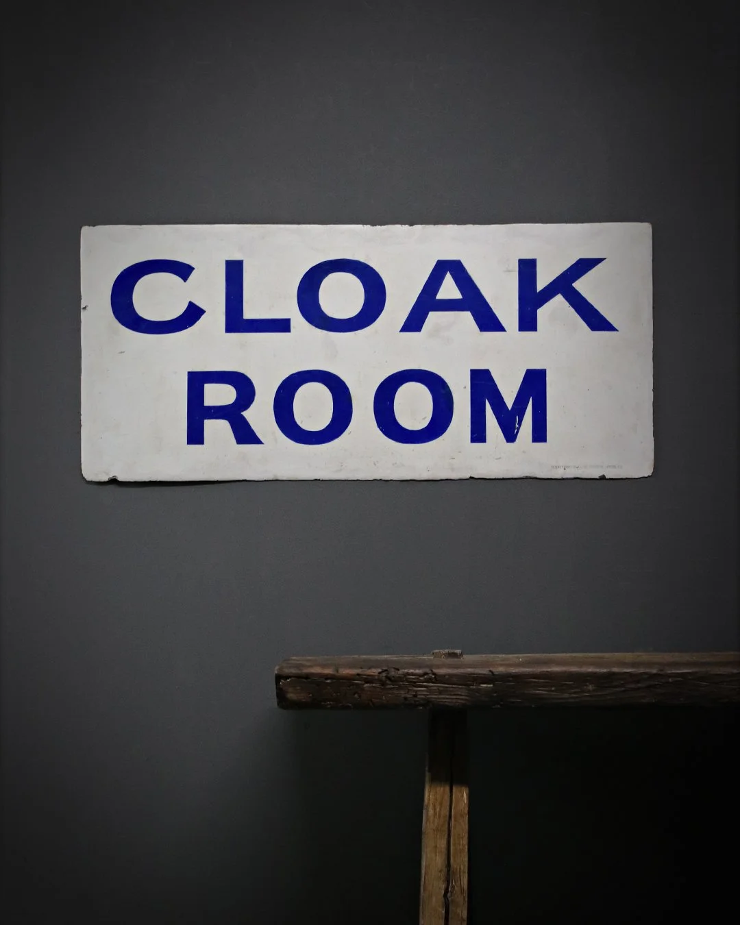 Cloak Room.We just love this enamel sign by the Patent Enamel Co, London, c.1920.W: ??cm H: ??cm D: ??cm£395