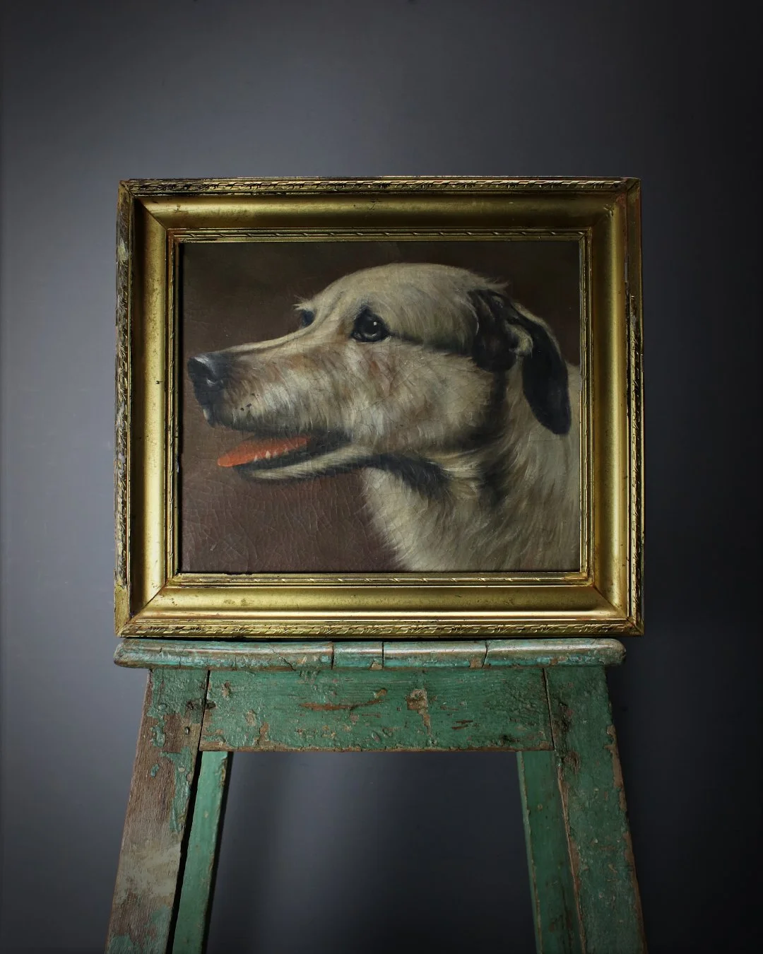 A wonderful naively painted oil on canvas of a Deerhound. English c.1900. W: ??cm H: ??cm D: ??cm£525