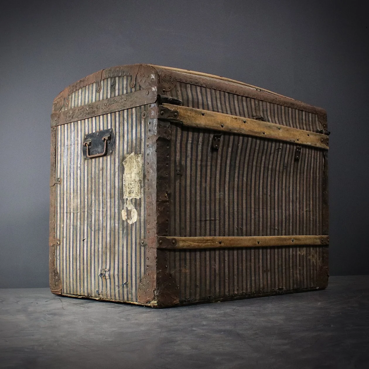 Have Trunk, Will Travel!A Fabulous thick woven fabric, dome topped travel trunk by Bon Marche Paris. A very attractive interiors piece. French, c1920 W: 76cm H: 62cm D: 48cm£245