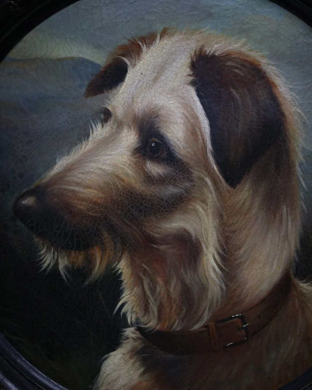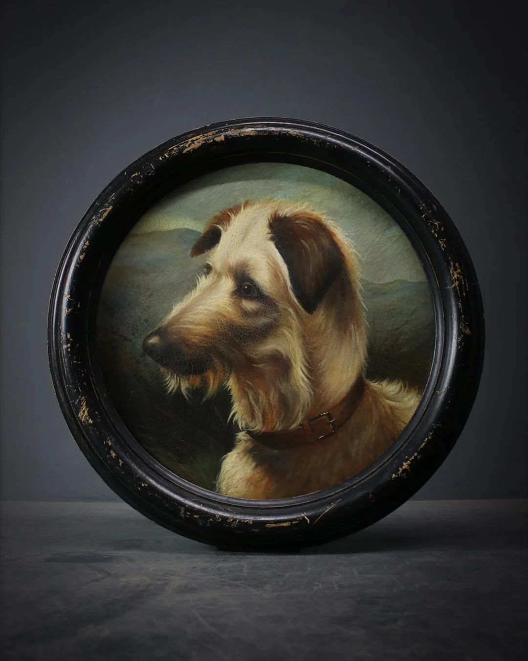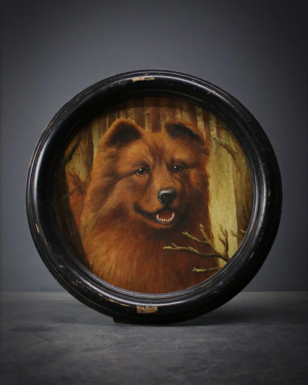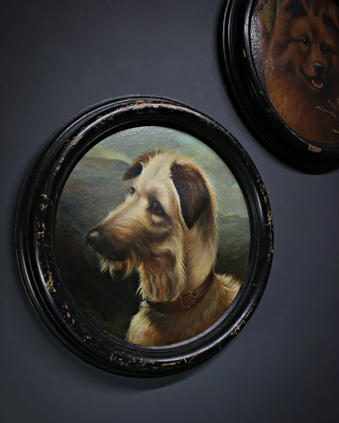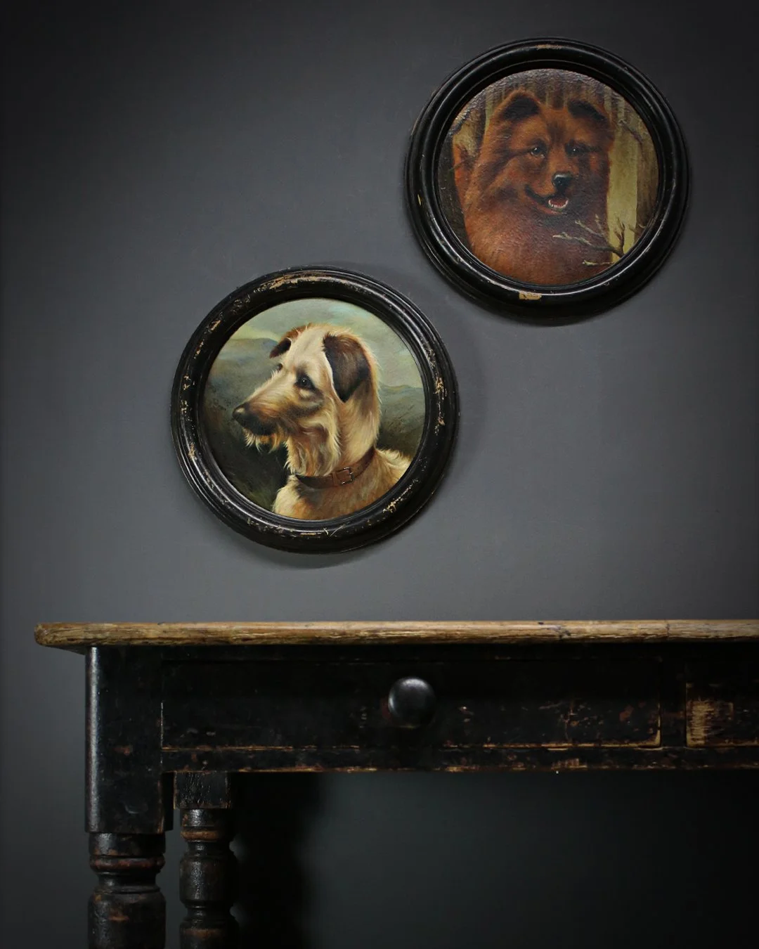 An exceptional pair of late 19th Century dog portraits depicting a Lurcher and a Chow Chow. Oil to canvas and sat in period ebonised circular frames. A simply stunning pair. English, c.1890.W: 48cm H: 48cm£1195 I Sold as a pair