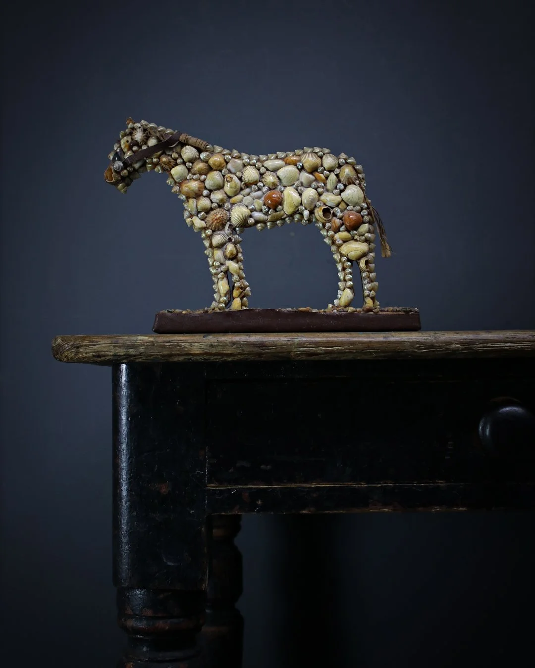 A fabulous early 20th century shellwork in the form of a horse. The ultimate ‘Folky’ interiors piece if ever there was! English, c.1920.W: 32cm H: 26cm£295