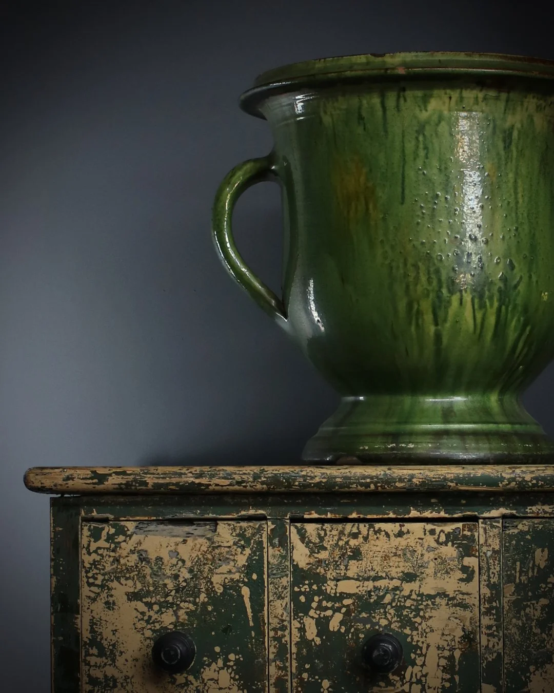 Some wonderful colour to this Beautiful large glazed earthenware castelnaudary planter. France, circa 1900. W: 42cm H: 40cm £395