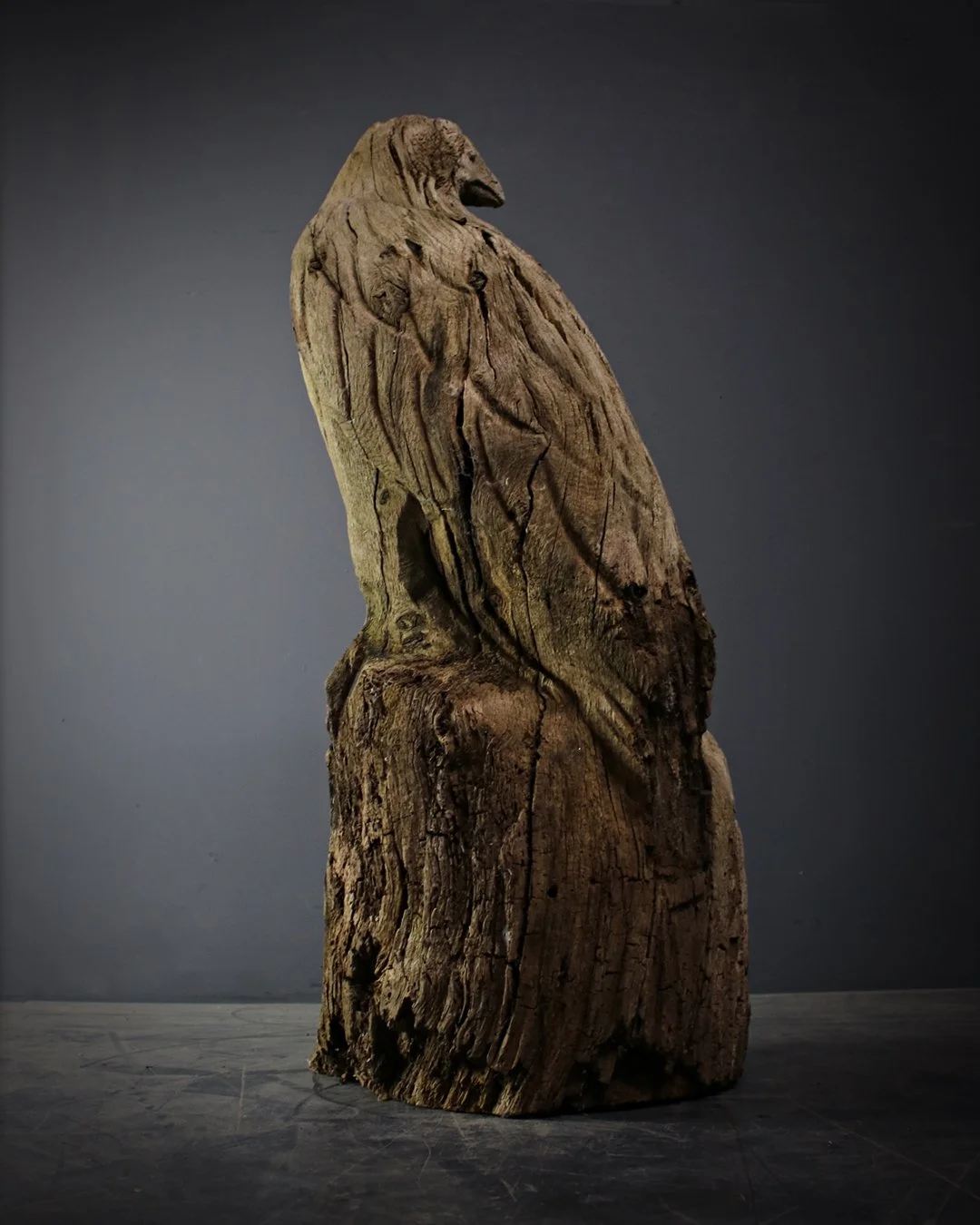 A rustic carved oak eagle, wonderfully naive yet reassurigly heavy! Weathered to perfection having spent its many years in the elements and standing at 76cm. English, c.1950.SOLD