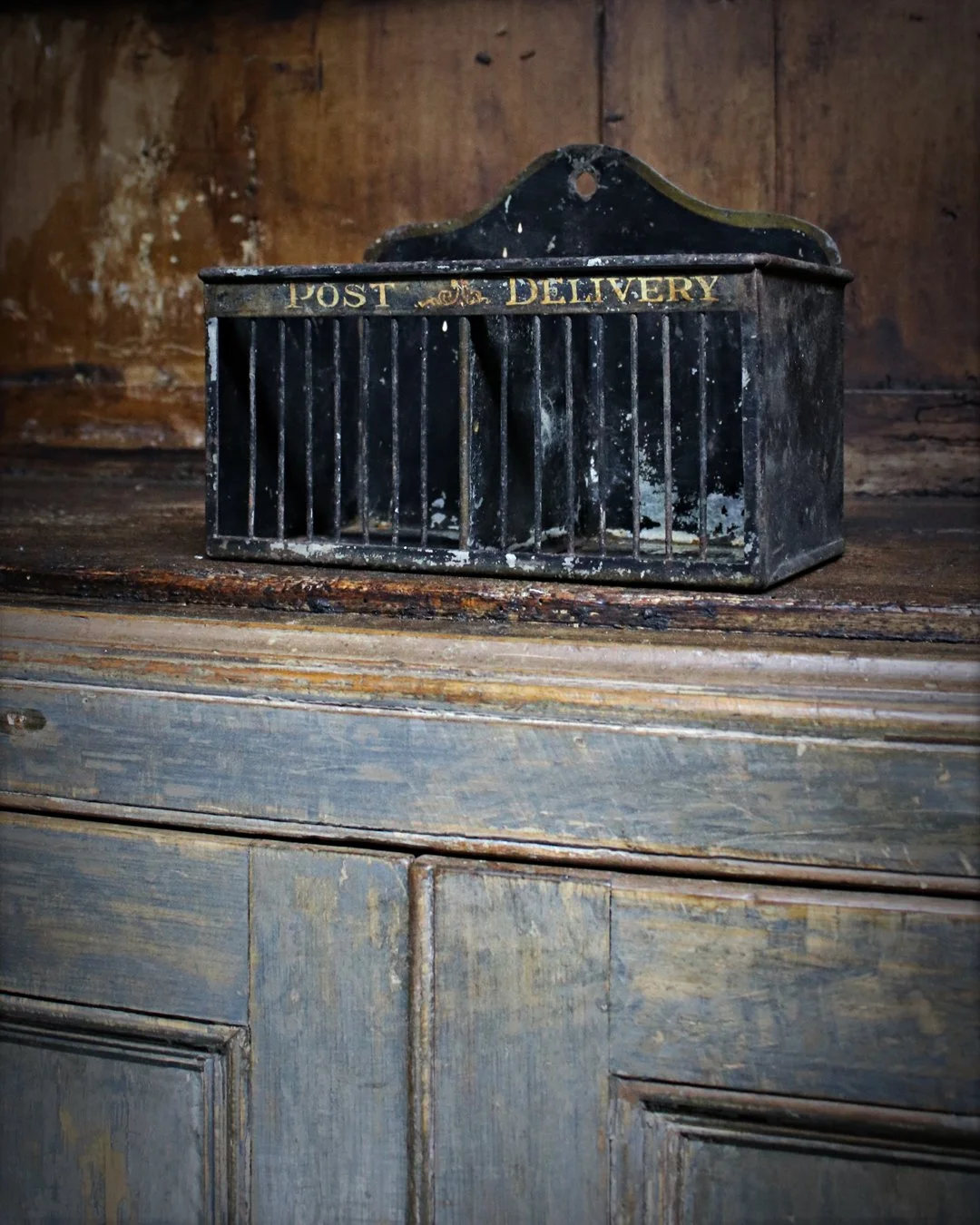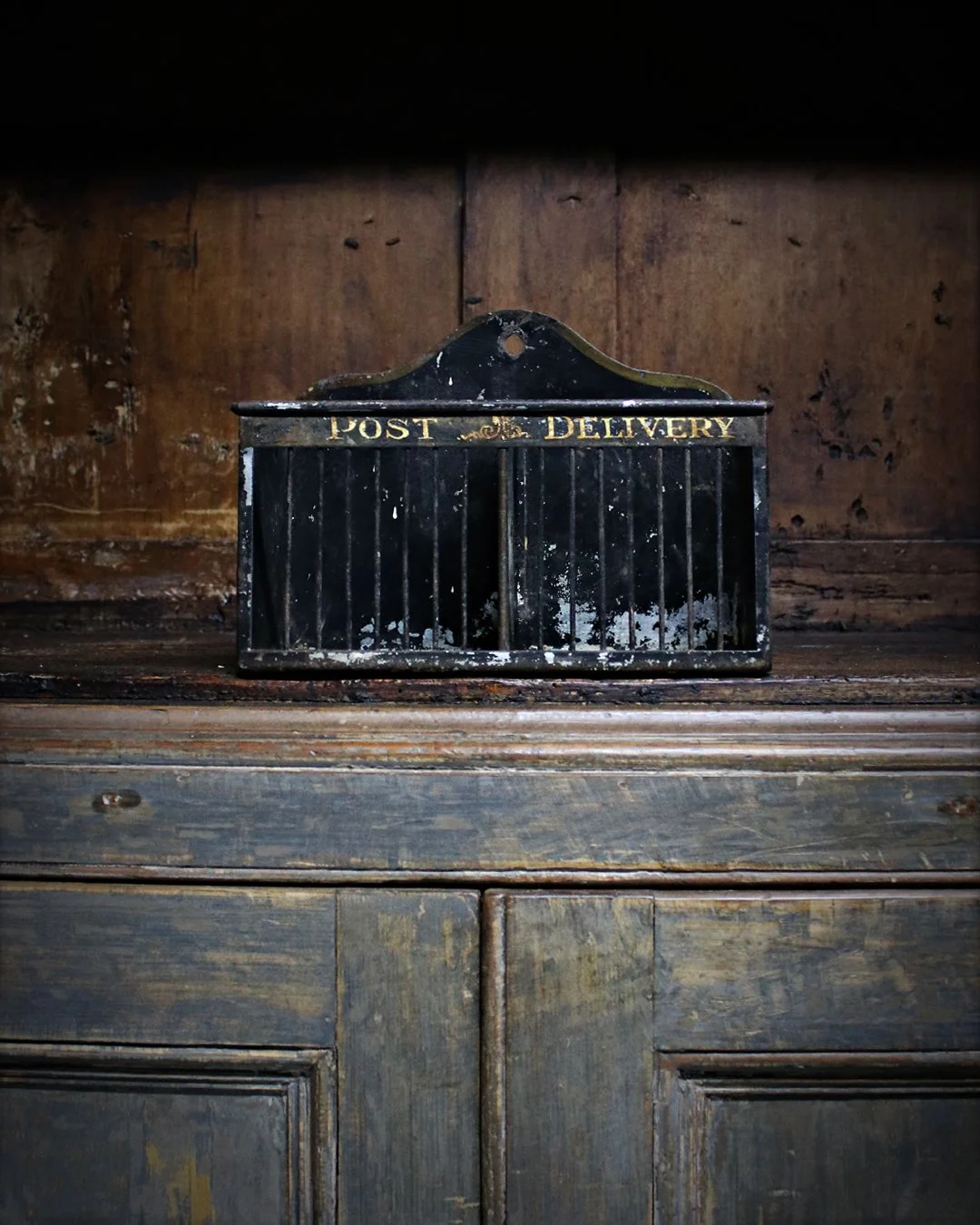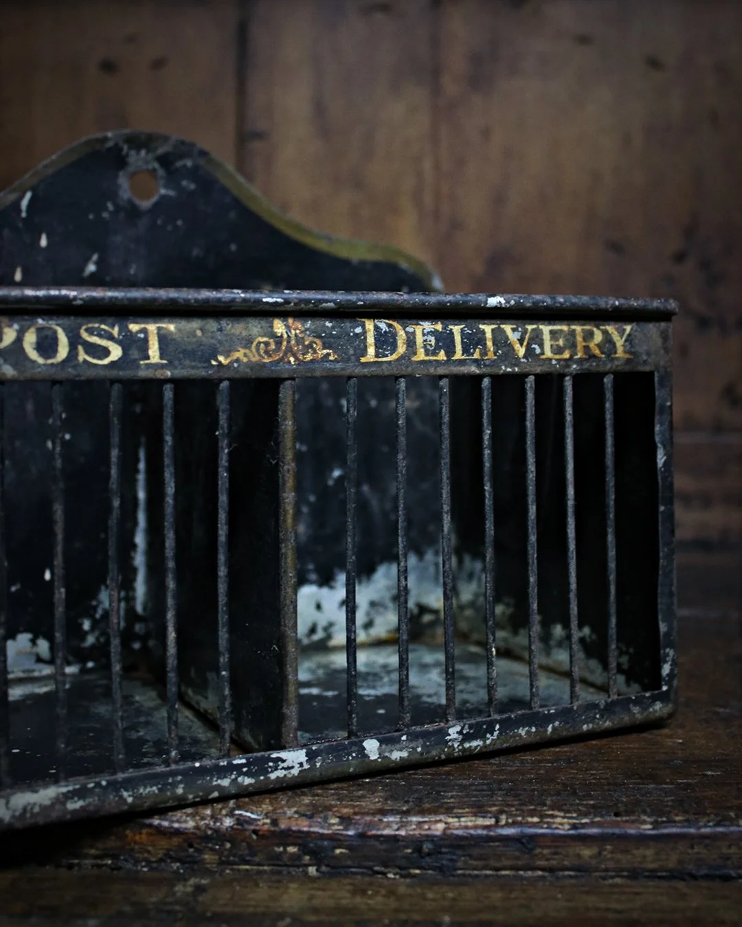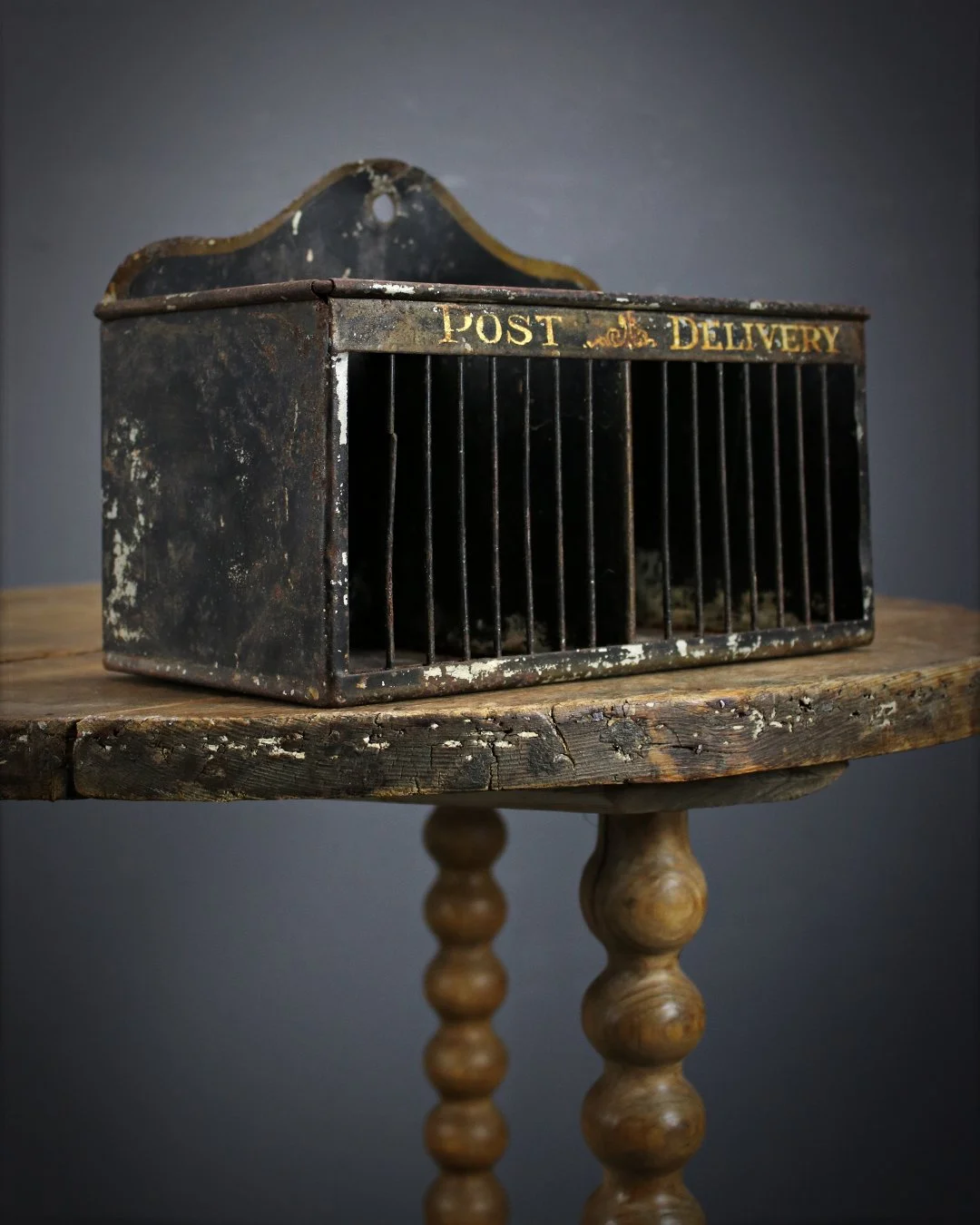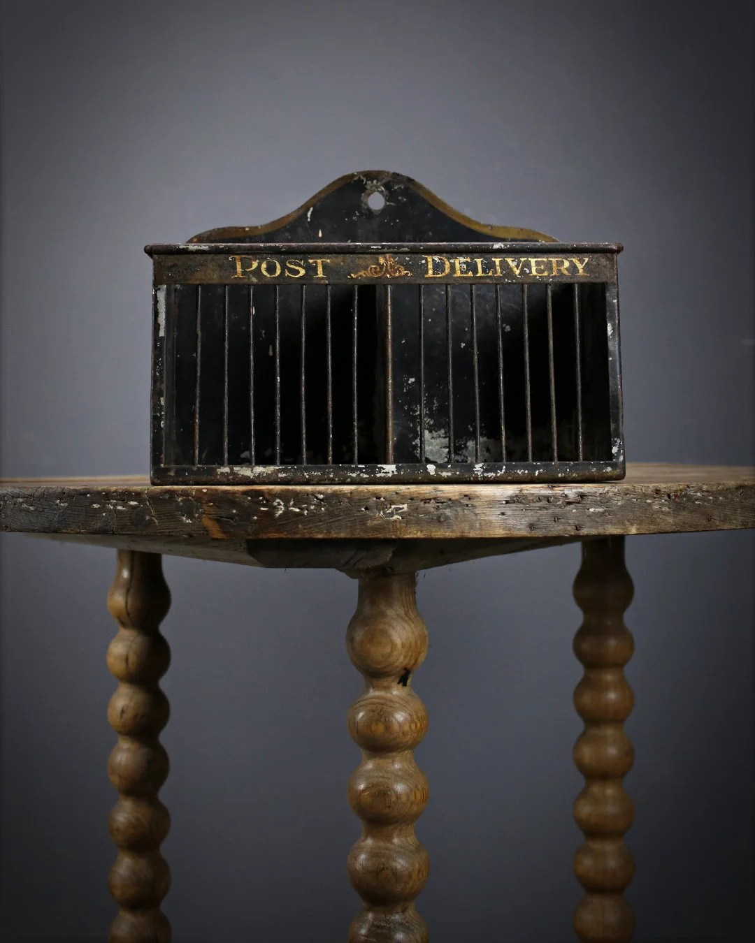 A charming toleware letter rack with its gilt titles ‘Post’ & ‘Delivery’ heading each compartment. A wonderful window into simpler times when long distance messages were sent via paper & pen! English c.1900. W: ??cm H: ??cm D: ??cm£225