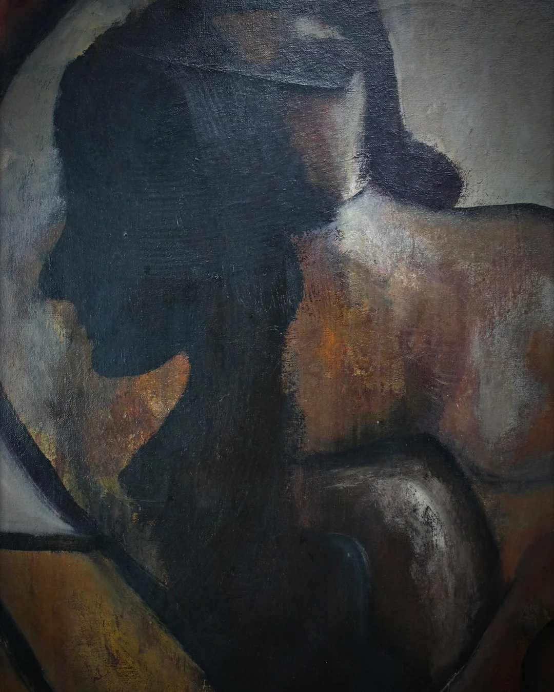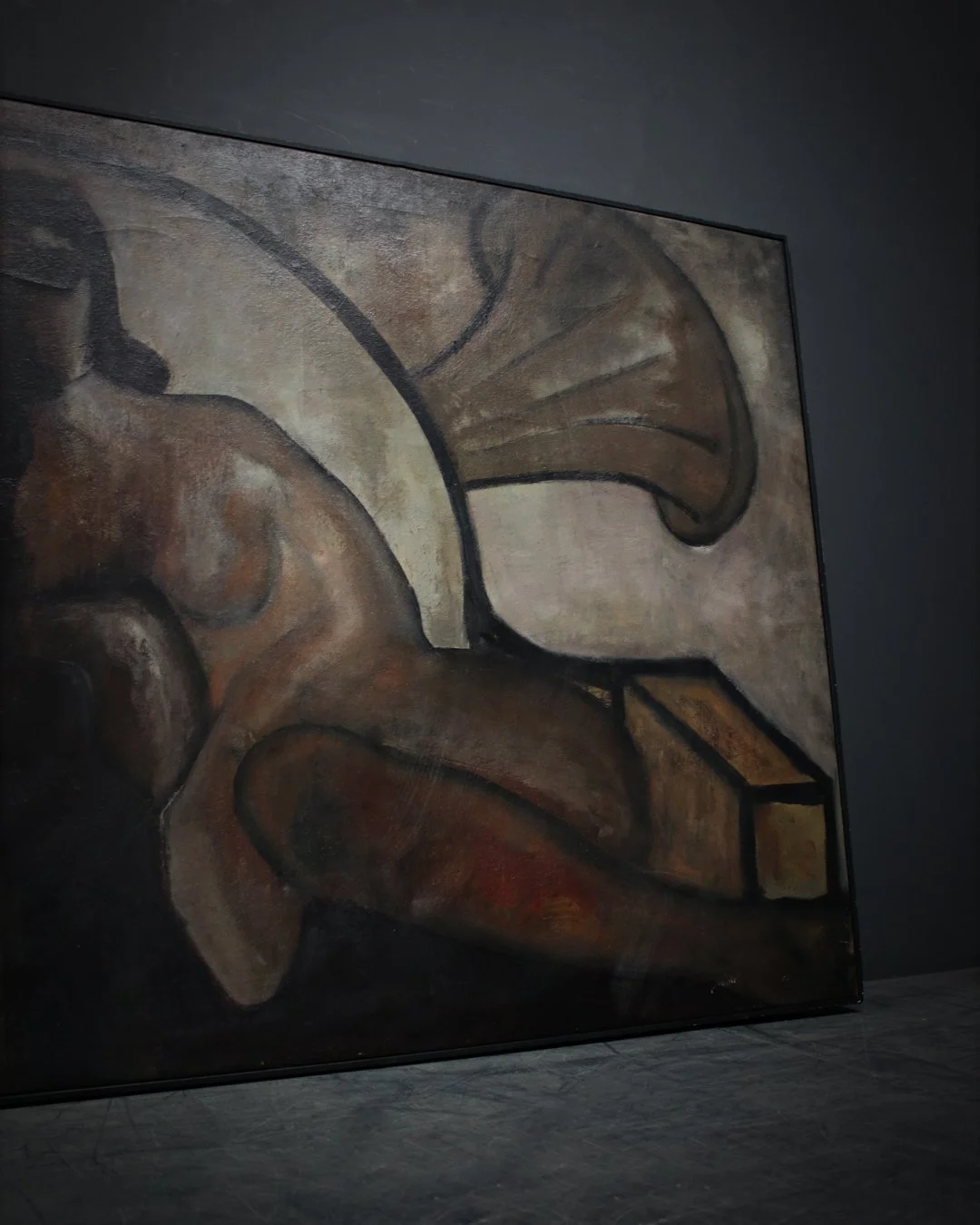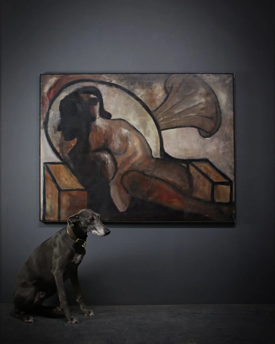 We just love the subdued tones of this c.1960 french abstract oil on canvas with its obvious musical hints - a highly engaging piece of large scale wall art.W: 118cm H: 90cm£475